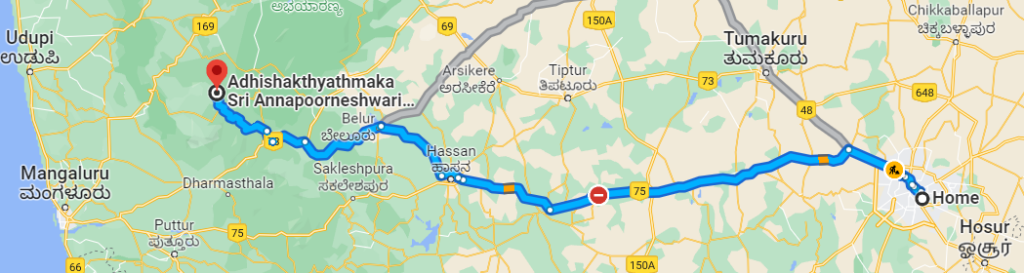 Outside the city, it was Nelamangala -> Yediyur -> Kunigal -> Chennarayapatna -> Hassan -> Belur -> Kottigehara -> Kalasa -> Horandu.